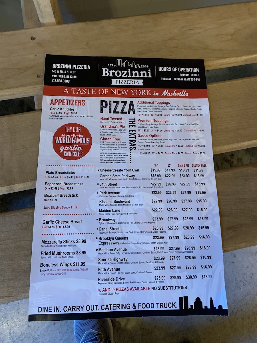 Welcome to Brozinni Pizzeria, a delightful culinary haven nestled in the heart of Nashville, IN. Known for its authentic New York-style pizza, this charming spot captures the bustling essence of NYC with its decor and inviting atmosphere.