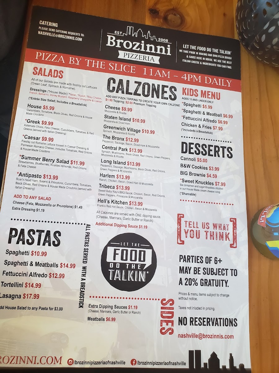 Brozinni Pizzeria Menu (2025 Update)